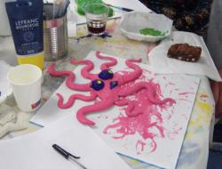 Jeudi 16 mai, les résidents ont reçu les élèves de la 5°B du collège de Saint-Agnant pour une dernière rencontre de travail collectif. Les artistes du jour ont travaillé sur les derniers mollusques en argile, les peintures, les découpages.