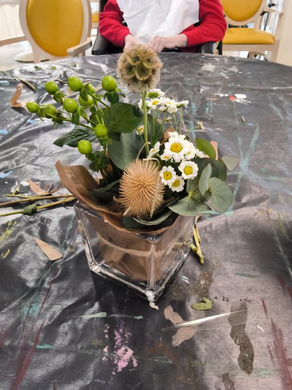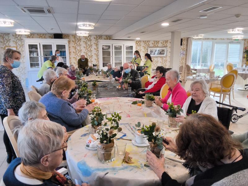 Avec ses teintes blanches, ses contrastes végétaux et ses touches décoratives hivernales, elle a séduit tous les participants. Chacun est reparti fier de sa réalisation, unique, personnelle et porteuse d’une belle magie de saison qui sera déposé sur chaque table du restaurant.