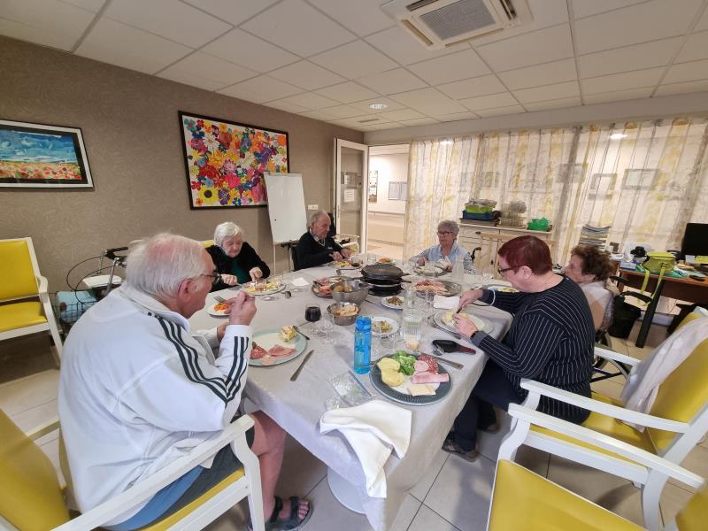 Un repas raclette a été organisé aux Jardins du Marais avec la participation de cinq résidents, d’Anaïs, l’animatrice, et de Colette, notre secrétaire d’accueil.