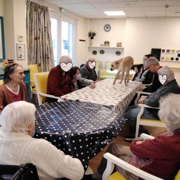 Chaque mois, dans le lieu de vie Aloise, Valérie Dancourt de l'association "médiation animale Sophrologie", accompagnée de sa "ménagerie", propose des séances de zoothérapie. Les résidents sont toujours heureux de la venue de Dobby, le chien et de ses compagnons les cochons d'Inde : tic et tac, pollux...