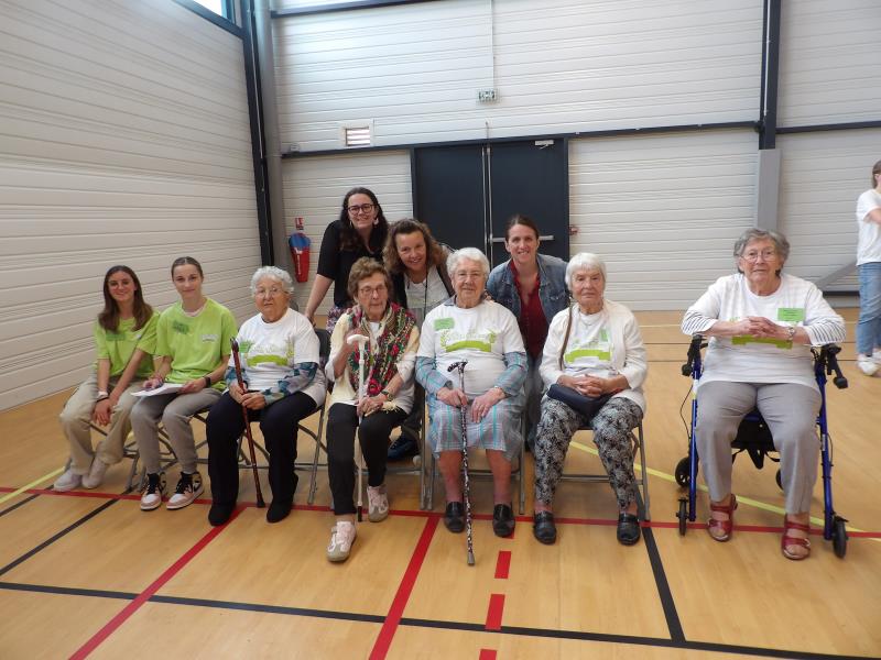 Jeudi 23 mai, l'équipe des Jardins du Marais était composée de Mesdames Louisette Viaud, Yvette Ménard, Bernadette Hervey, Alice Lanabere, Josette Bardet, Kélia et Maëlyss, collégiennes, coachées par Christian Gélineau, bénévole, Séverine, soignante et Sophie (alias Ernestine supportrice officielle), psychomotricienne. Chacune des 8 équipes de 5 résidents était assistée de 2 collégiens.