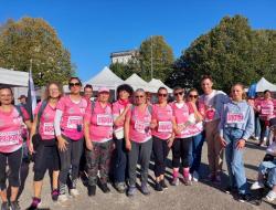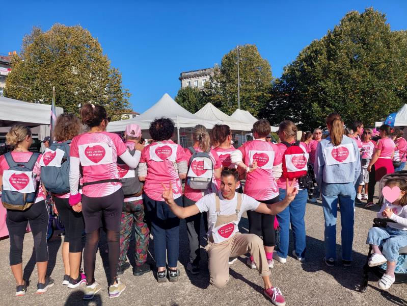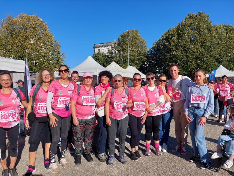 Christelle Michelet, directrice de la Résidence les Jardins du Marais a rassemblé une partie de son équipe sous la même bannière. Khadija, Céline, Sandrine, Isabelle, Claudine, Laurie et Tatiana ont porté avec elles le soutien de leurs collègues restés auprès des résidents, parmi cette marée rose composée de plus de 5400 personnes. Frantz, idec et Mélanie, psychologue ont, quant à eux, supporté l'équipe au départ et l'ont accueillie à l'arrivée. Frantz espère se joindre à elle pour la prochaine édition.