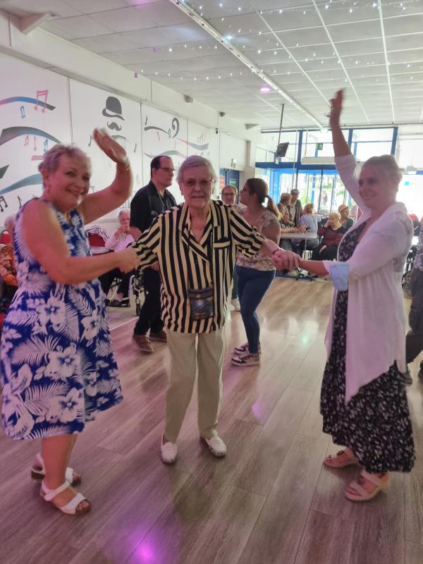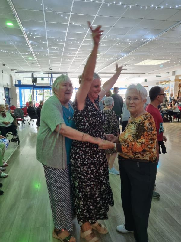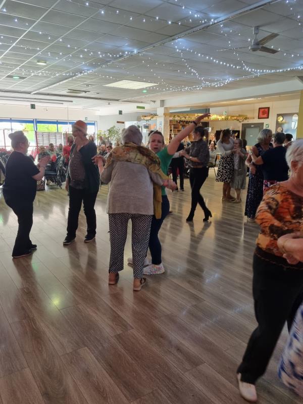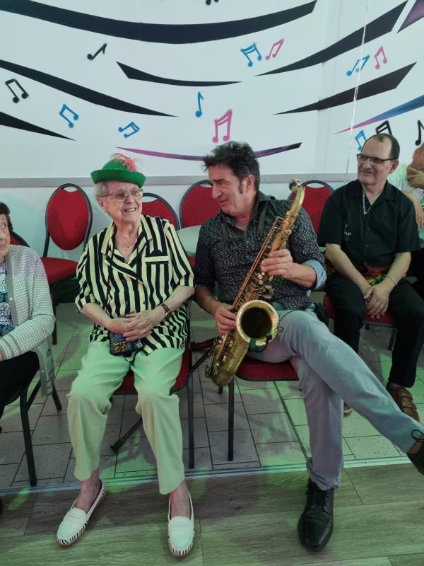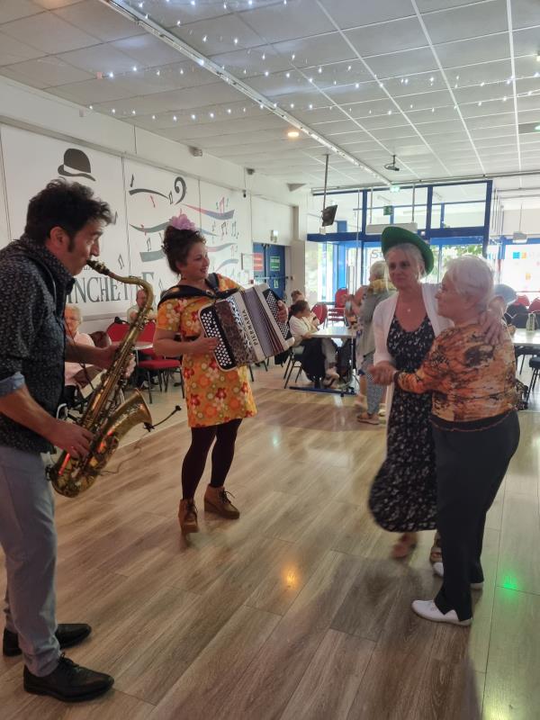 Très vite, la piste de danse s’est animée : Sandrine notre aide soignante et Nicole notre bénévole, avec leurs déhanchés endiablés, ont entraîné les plus timides.