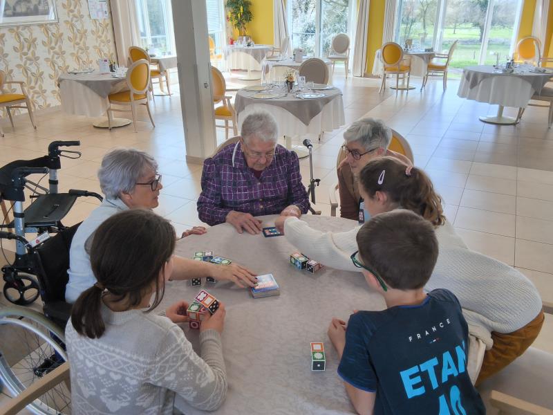 Le mercredi 4 mars 2026, les résidents ont accueilli les enfants du centre de loisirs de Saint-Agnant pour un après-midi autour de différents jeux de société, organisé au sein de l’établissement. Cette rencontre a permis aux participants de se retrouver autour d’activités simples.